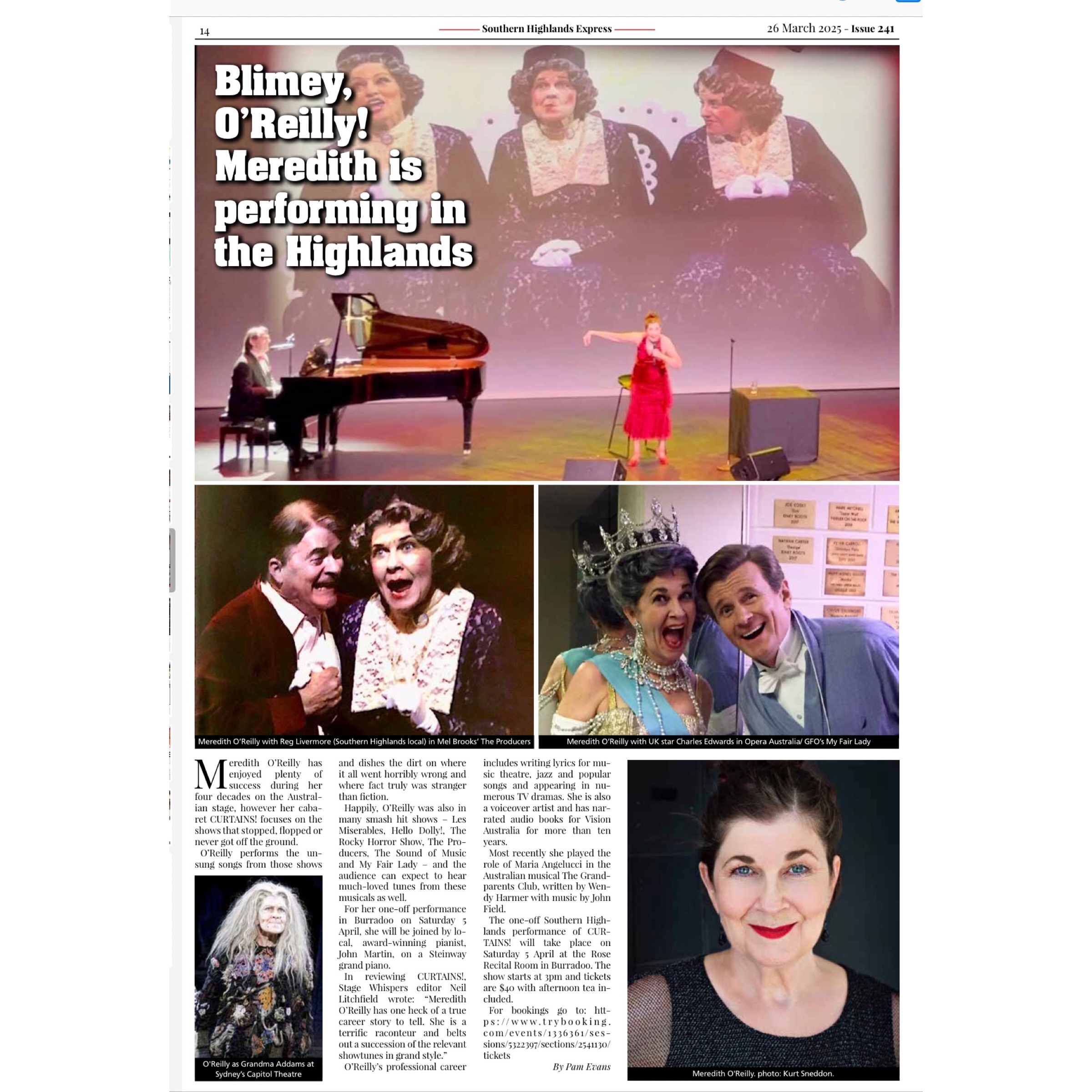 Meredith has extensive professional experience playing key roles in TV shows, Plays, Musical Theatre and Advertisements.